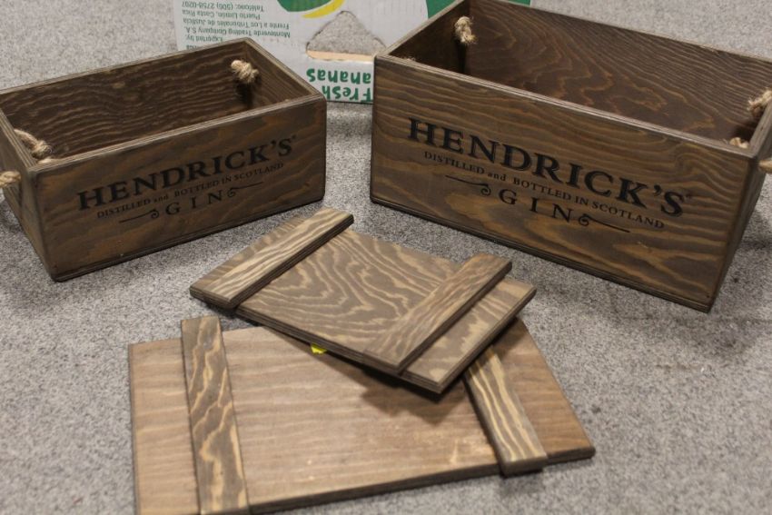 TWO REPRODUCTION HENDRICK'S GIN ADVERTISING BOXES