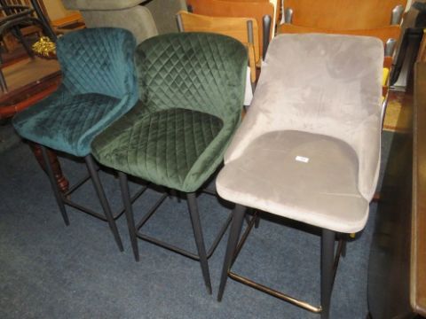 THREE MODERN VELVET BAR STOOLS