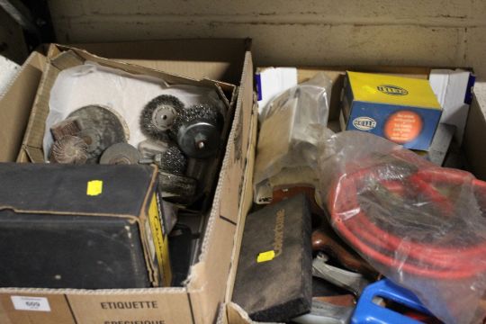 TWO BOXES OF ASSORTED TOOLS TO INCLUDE SAWS ETC