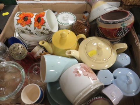 FOUR TRAYS OF ASSORTED CERAMICS TO INCLUDE PORTMEIRION ETC