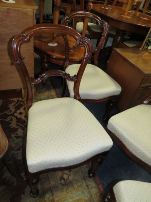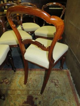 A SET OF SIX 19TH CENTURY ROSEWOOD CROWN BACK DINING CHAIRS, raised on shaped turned supports