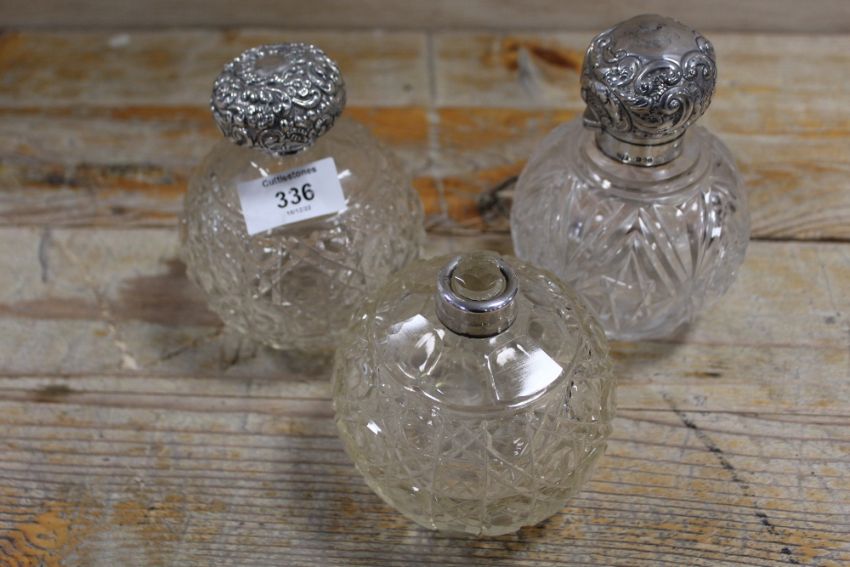 THREE ASSORTED SILVER TOPPED SCENT BOTTLES ALL A/F