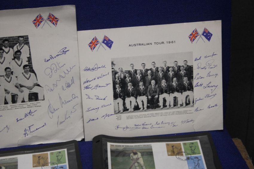 A COLLECTION OF SIGNED CRICKET AUTOGRAPHS TO INCLUDE ENGLAND, WEST INDIES, AUSTRALIA ETC TOGETHER WITH A COLLECTION OF CRICKET RELATED 1ST DAY COVERS