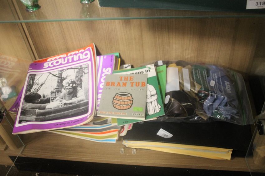 A COLLECTION OF SCOUT RELATED ITEMS TO INCLUDE BOOKS, BELTS ETC