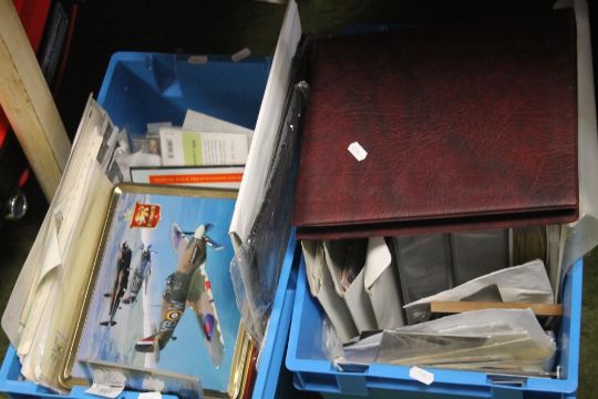 TWO TRAYS OF STAMP ALBUMBS AND FIRST AID COVERS ETC