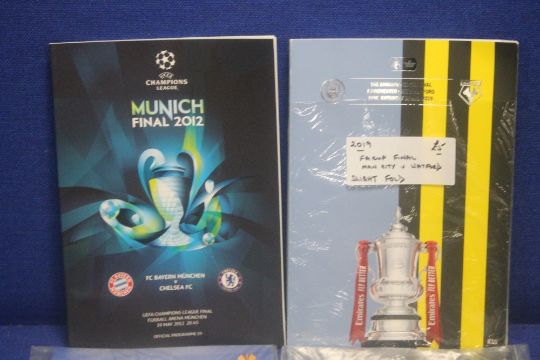 A COLLECTION OF CUP FINAL PROGRAMMES TO INCLUDE 2019 CUP FINAL PROGRAMME MUNICH 2012 CHAMPIONS LEAGUE FINAL PROGRAMME, LISBON 2014 CUP FINAL PROGRAMME ETC