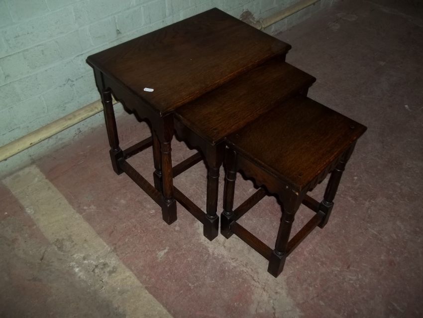 A SOLID OAK PRIORY STYLE NEST OF TABLES