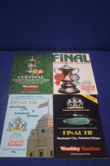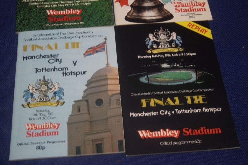 A 1979 ARSENAL V MANCHESTER UNITED CUP FINAL PROGRAMME TOGETHER WITH A 1980 ARSENAL V WEST HAM CUP FINAL PROGRAMME, A MANCHESTER CITY V TOTTENHAM 1981 CUP FINAL PROGRAMME AND A MANCHESTER CITY V TOTTENHAM CUP FINAL REPLAY PROGRAMME 1981
