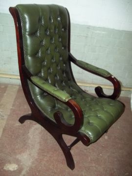 A GREEN LEATHER CHESTERFIELD STYLE OCCASIONAL CHAIR