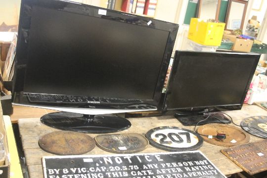 A SAMSUNG FLAT SCREEN TV 31 INCH TOGETHER WITH A CELLO 27 INCH FLAT SCREEN TV