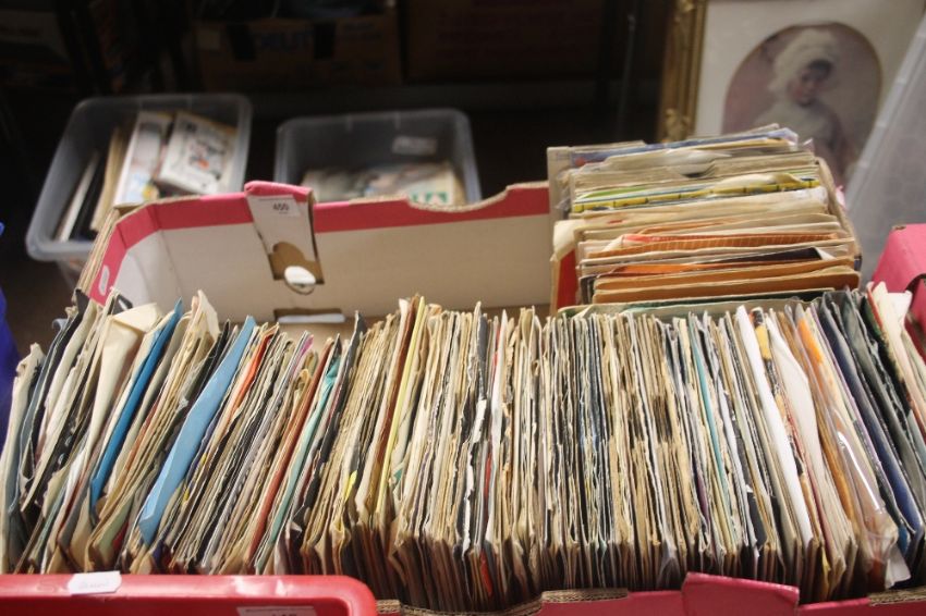 A TRAY OF SINGLE RECORDS TO INCLUDE 60S, 70S, 80S, AND 90S