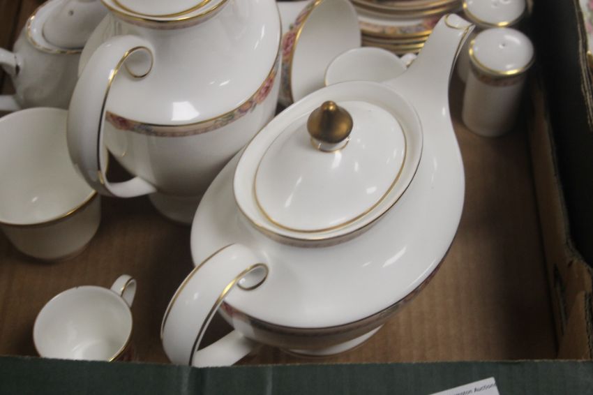 A QUANTITY OF ROYAL ALBERT TEA WARE AND A QUANTITY OF DOULTON TEAWARE (TRAYS NOT INCLUDED)