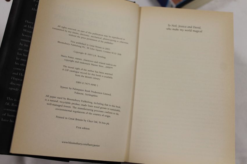 FIVE BOOKS BY J K ROWLING TO INCLUDE FOUR HARRY POTTER EXAMPLES