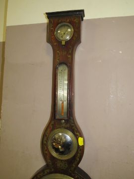 AN ANTIQUE ROSEWOOD MERCURY BAROMETER WITH PAINTED DECORATION