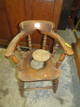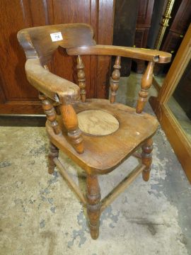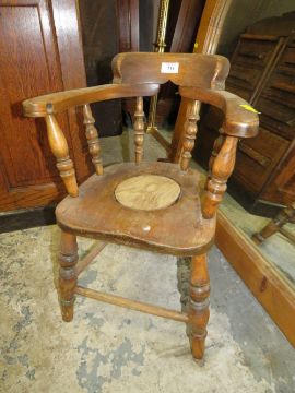 A VINTAGE CHILDS WINDSOR ARMCHAIR WITH HOLE