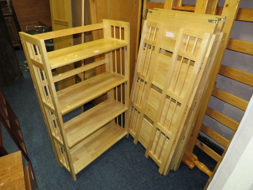 THREE MODERN FOLDING FOUR TIER BOOKSHELVES H-118 W-71 CM (3)