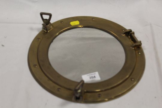 A VINTAGE BRASS PORTHOLE MIRROR