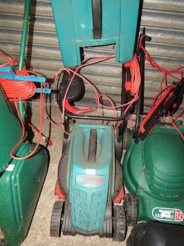 A BOSCH ROTAK 32R ELECTRIC MOWER AND BOX