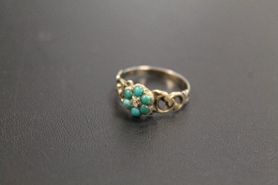 A VICTORIAN GOLD RING SET WITH TURQUOISE STONES
