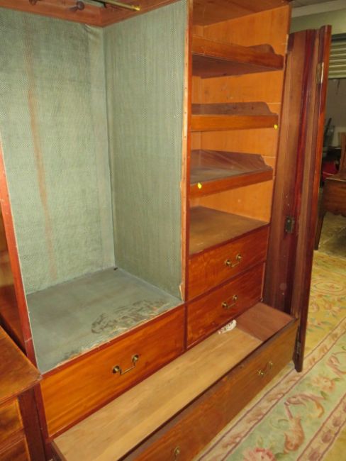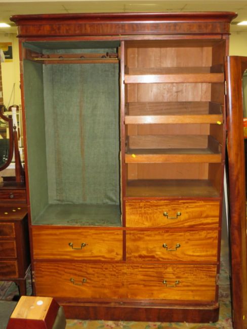 A LARGE VICTORIAN TWIN MIRRORED DOOR WARDROBE H-206 W-138 CM
