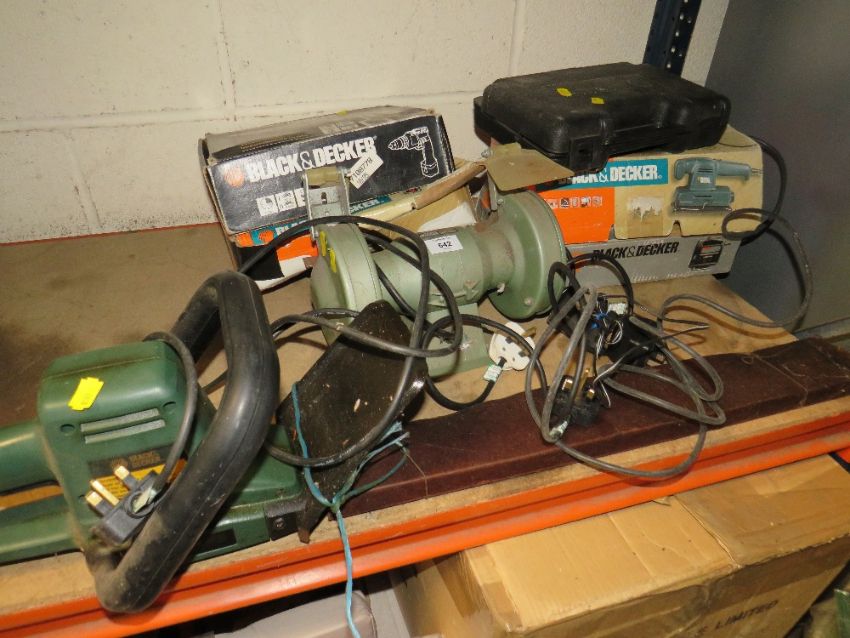 A QUANTITY OF ASSORTED TOOLS TO INCLUDE A BENCH GRINDER, SANDER ETC - HOUSE CLEARANCE
