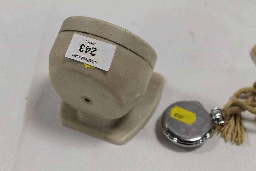 A SIMPLEX SOLAR DESK TOP RETRO STYLE WEATHER STATION TOGETHER WITH A VINTAGE INGERSOLL STOP WATCH