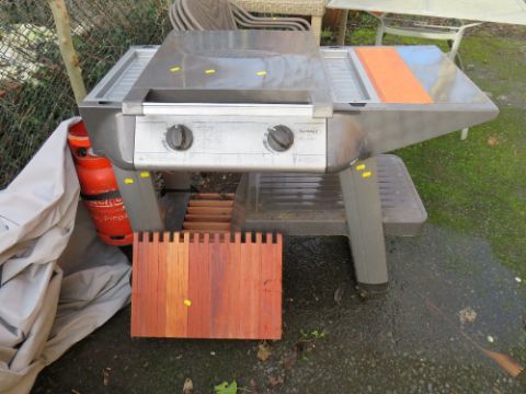 AN OUTBACK GAS BARBECUE, TOOLS AND ACCESSORIES