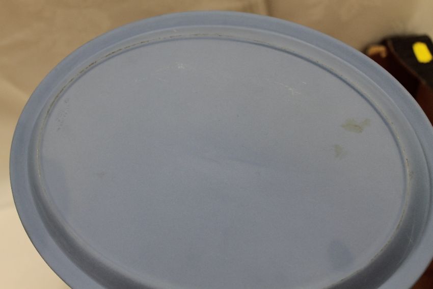 A SMALL TRAY OF WEDGWOOD BLUE JASPERWARE