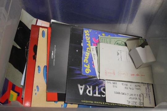 A TRAY OF ASSORTED EPHEMERA TO INCLUDE PROGRAMMES