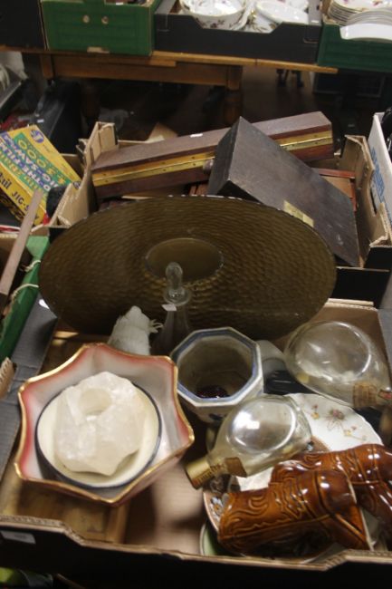 A TRAY OF ASSORTED SUNDRIES TOGETHER WITH A TRAY OF TREEN (TRAY NOT INCLUDED)