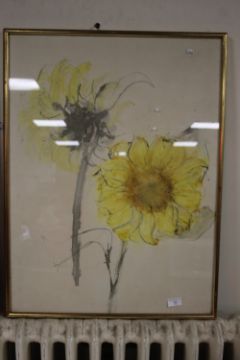 A FRAMED AND GLAZED WATERCOLOUR DEPICTING A SUNFLOWER