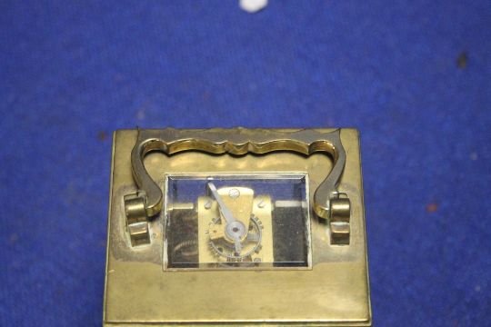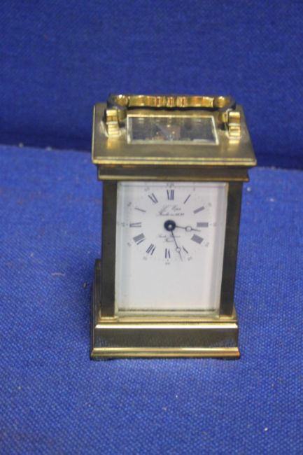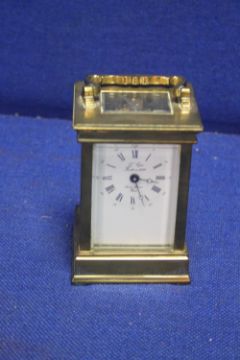 A BRASS FRENCH MAID CARRIAGE CLOCK
