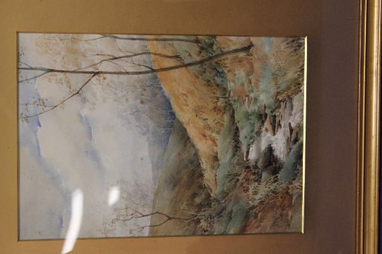 A FRAMED WATERCOLOUR OF A COUNTRYSIDE SCENE SIGNED TO THE LOWER RIGHT