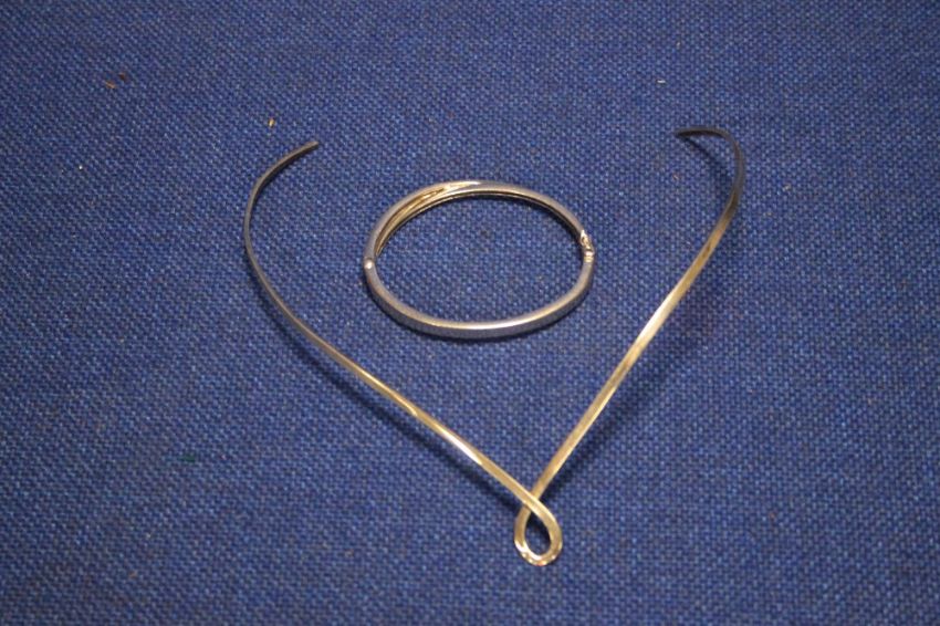 A DIAMOND SET 925 SILVER "WHITE ICE" BANGLE AND A 925 SILVER COLLAR NECKLACE