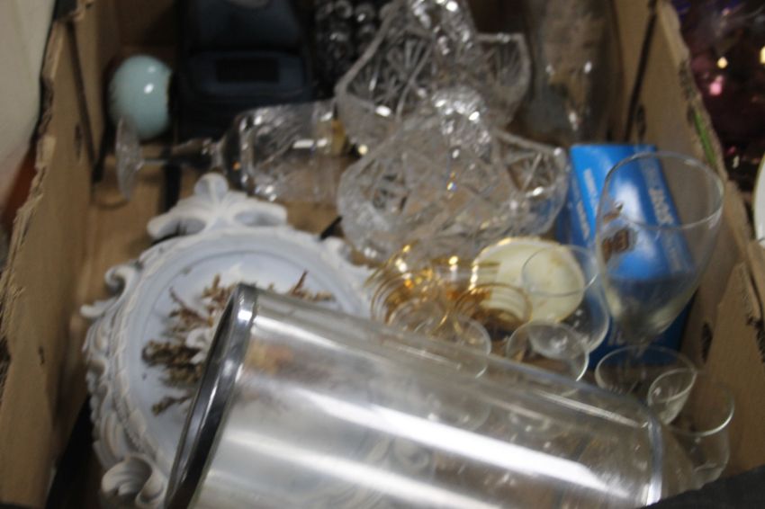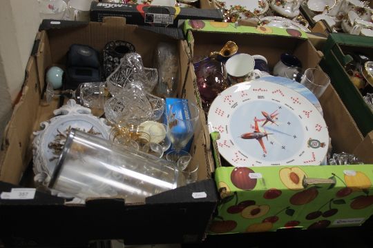 TWO TRAYS OF ASSORTED CERAMICS AND GLASSWARE (TRAYS NOT INCLUDED)