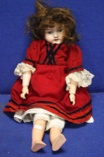 AN ANTIQUE PORCELAIN HEADED DOLL