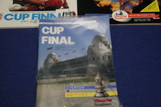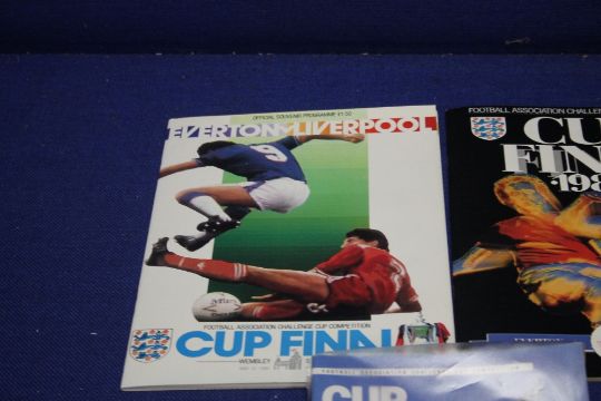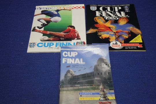 AN EVERTON V MANCHESTER UNITED CUP FINAL PROGRAMME 1985 TOGETHER WITH AN EVERTON V LIVERPOOL CUP FINAL PROGRAMME 1986 AND A 1984 EVERTON V WATFORD CUP FINAL PROGRAMME