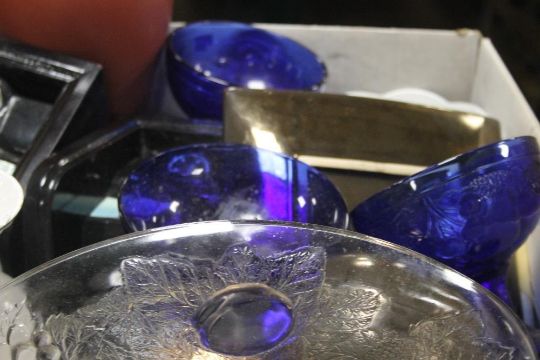 A TRAY OF ASSORTED CERAMICS AND GLASSWARE (TRAY NOT INCLUDED)