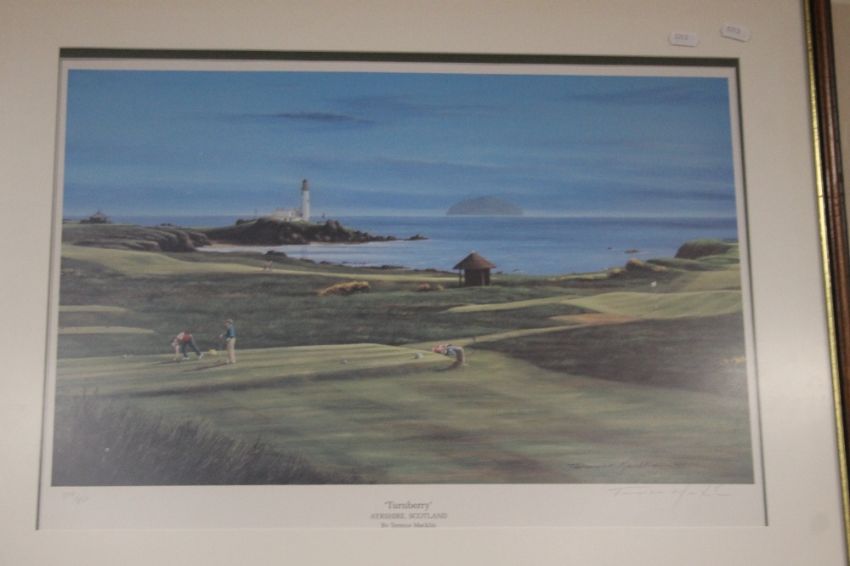 TWO FRAMED LIMITED EDITION TERENCE MACKLIN PRINTS OF GOLFING INTEREST