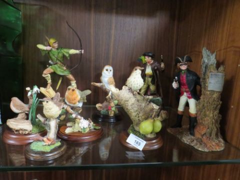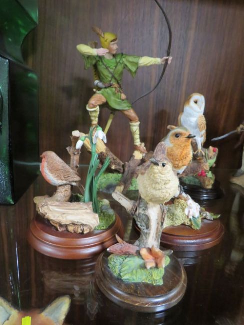 THREE ROYAL DOULTON FIGURES - DICK TURPIN, LONG JOHN SILVER AND ROBIN HOOD, TOGETHER WITH A SELECTION OF BIRDS ETC TO INCLUDE COUNTRY ARTISTS