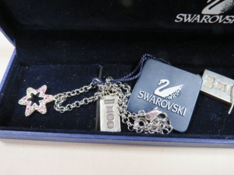 A BOXED SWAROVSKI BRACELET TOGETHER TIH A SILVER INGOT ETC