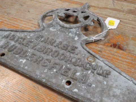 A VINTAGE METAL ADVERTISING SIGN FOR ASTLEY BROOKS & Co GARAGE HUDDERSFIELD