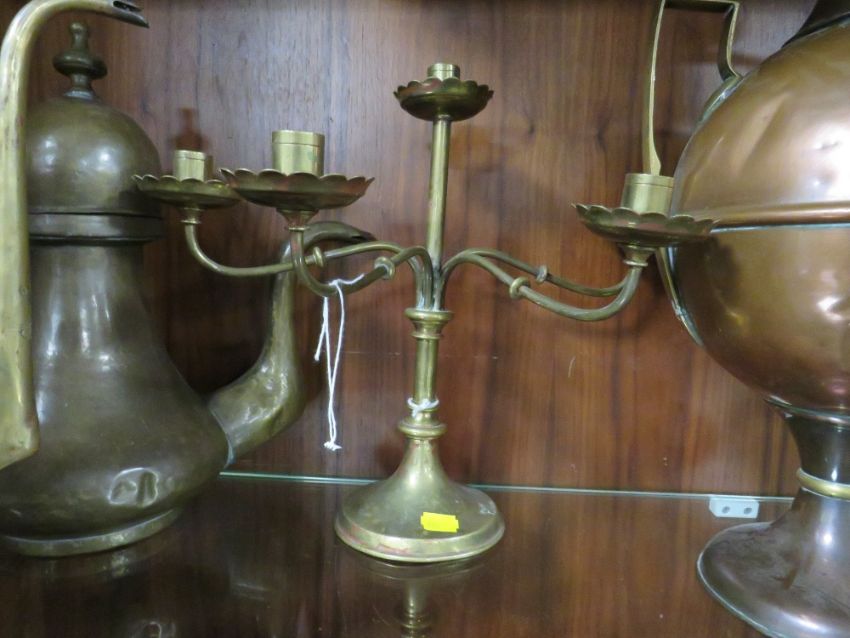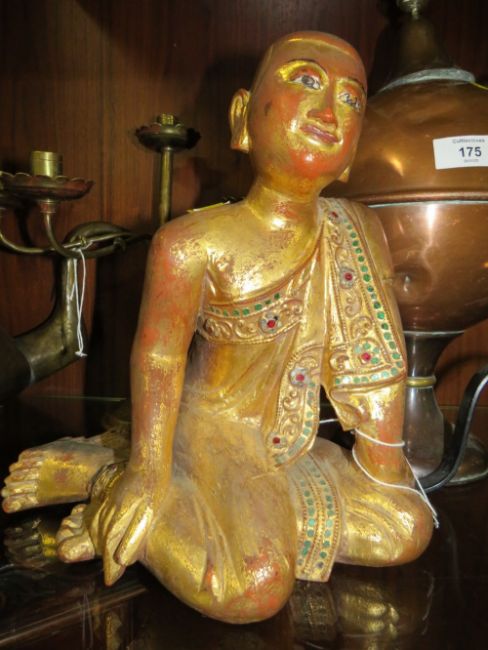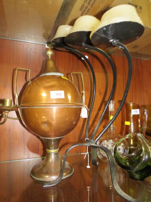 AN ANTIQUE COPPER SAMOVAR TOGETHER WITH A SELECTION OF ASSORTED METAL WARE AND A MODERN BUDDHA FIGURE
