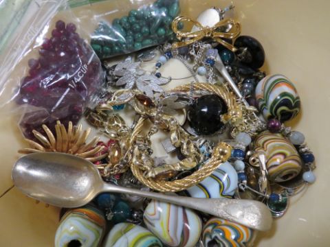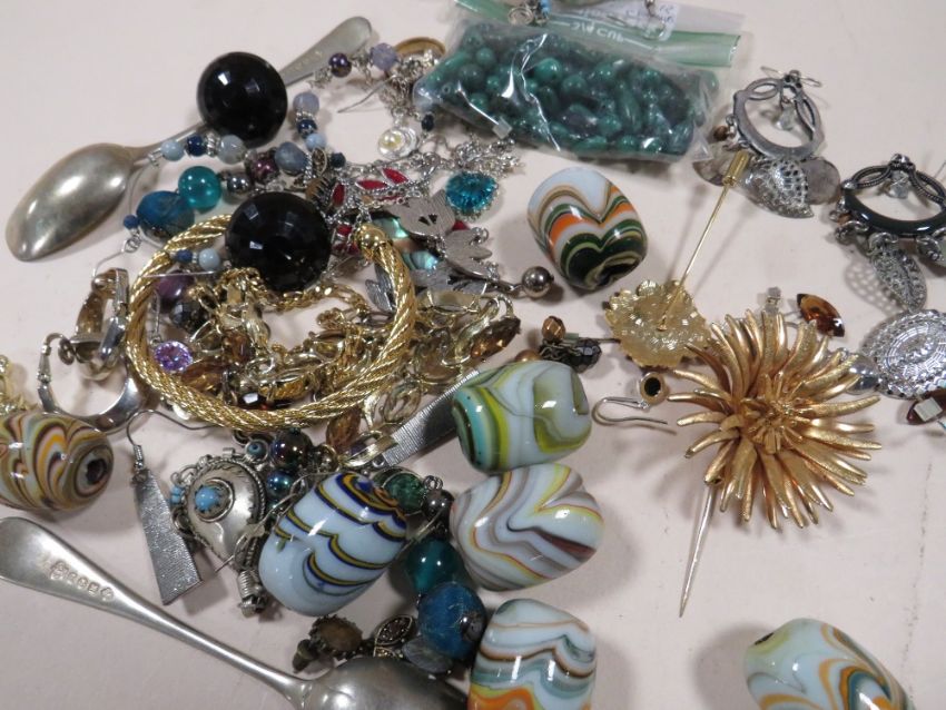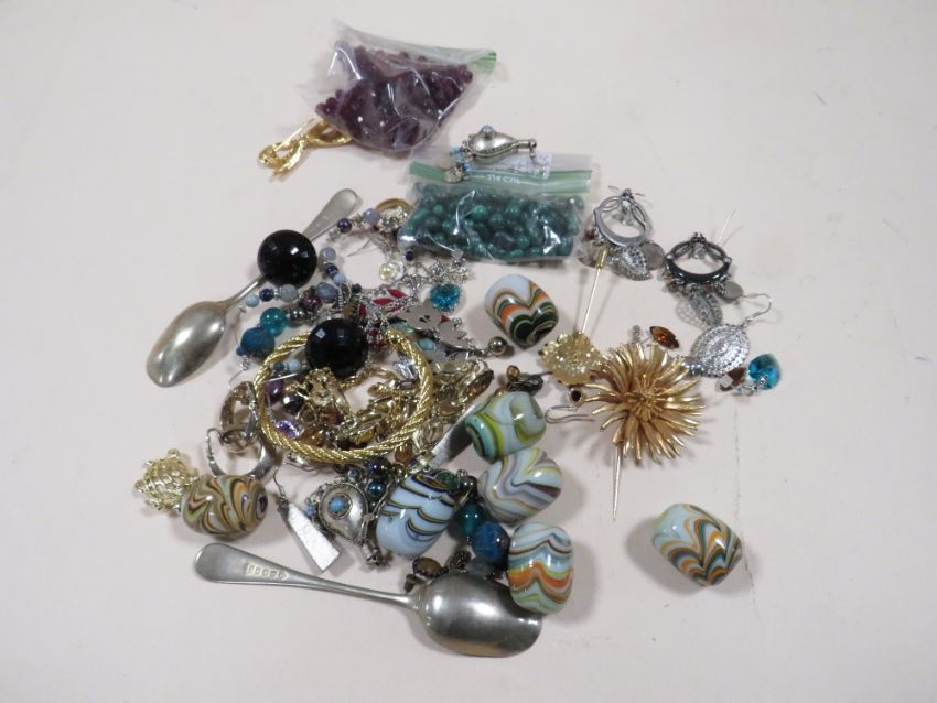 A QUANTITY OF COSTUME JEWELLERY TO INC LARGE MURANO GLASS BEADS