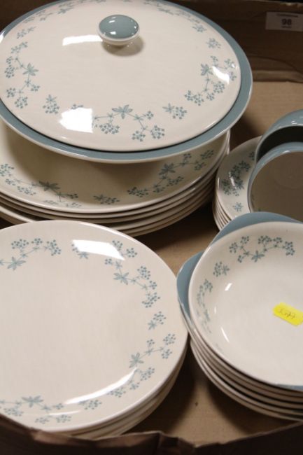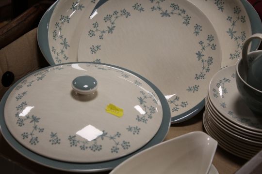TWO TRAYS OF ROYAL DOULTON 'APRIL SHOWERS' DINNERWARE ETC