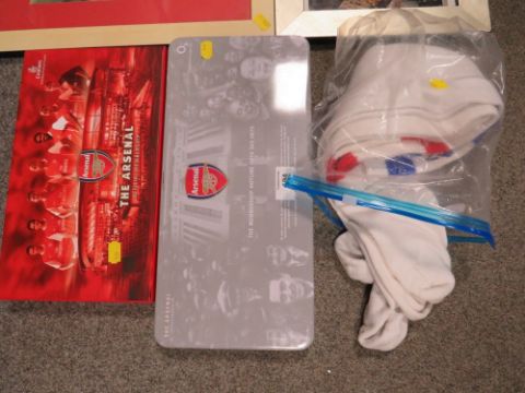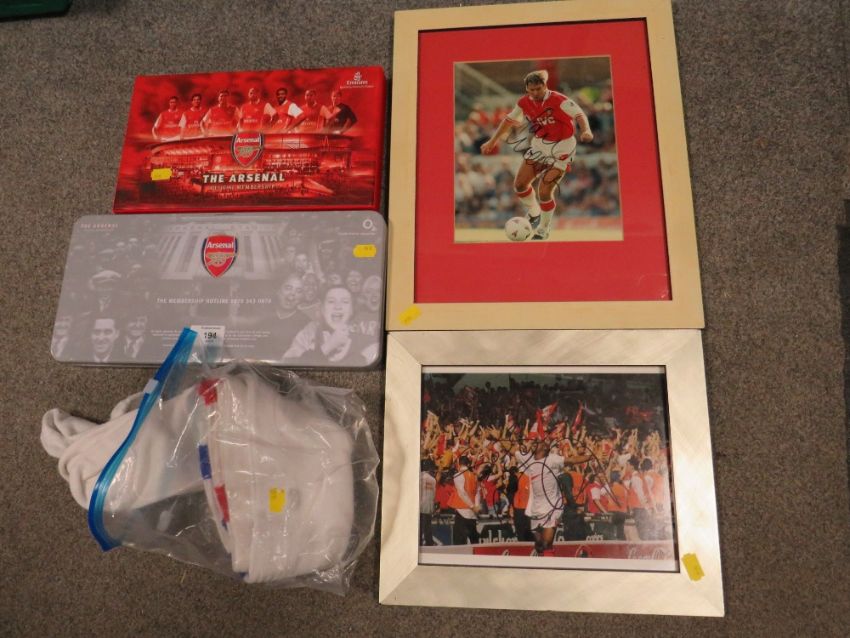 A COLLECTION OF ARSENAL FOOTBALL MEMORABILIA TO INC SIGNED PICTURE ETC