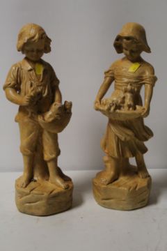 TWO TRAYS OF ASSORTED STONEWARE AND STUDIO POTTERY ETC TO INCLUDE SET OF POTTERY BOOKENDS, PORTMEIRION JARDINIERE ETC AND A SELECTION OF FIGURES