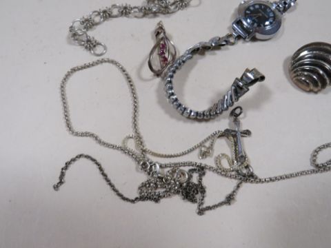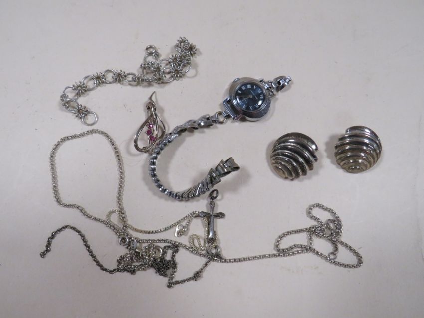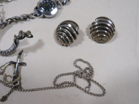 A SELECTION OF VINTAGE AND SILVER COSTUME JEWELLERY ETC
