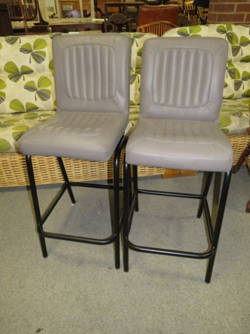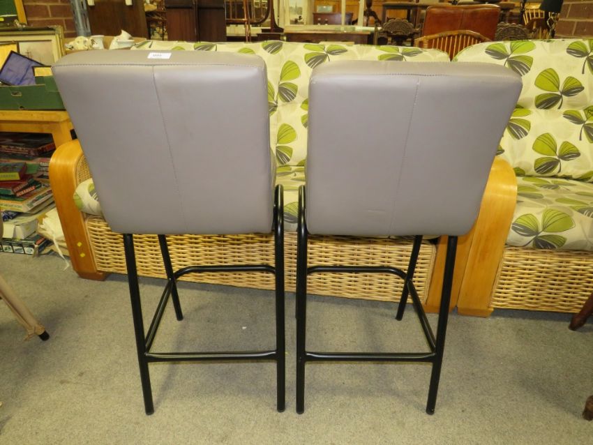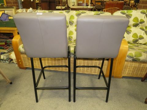 A PAIR OF MODERN GREY LEATHER BAR STOOLS