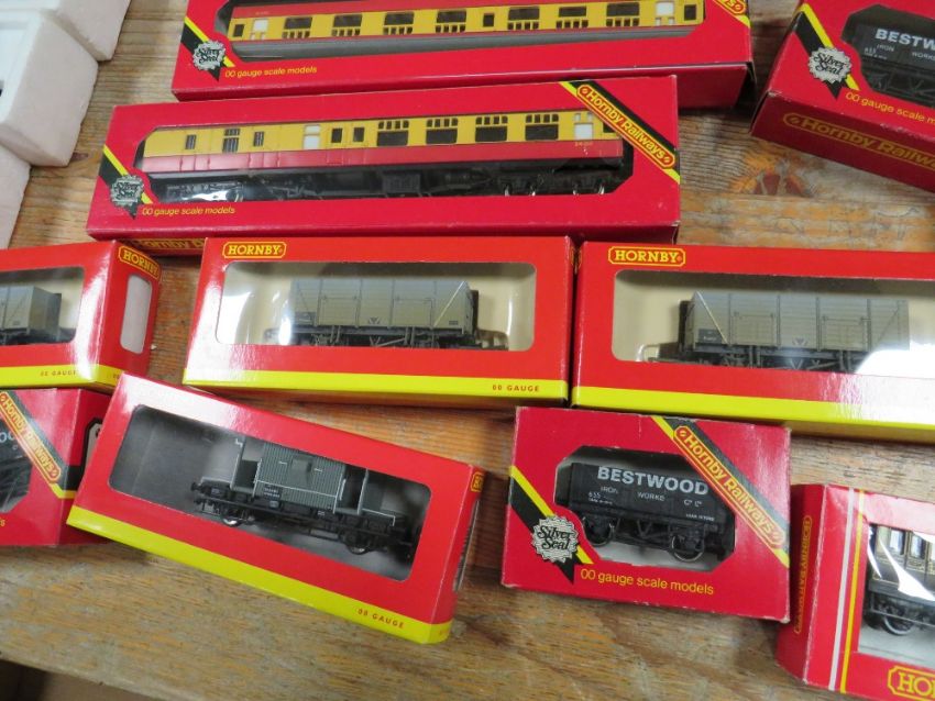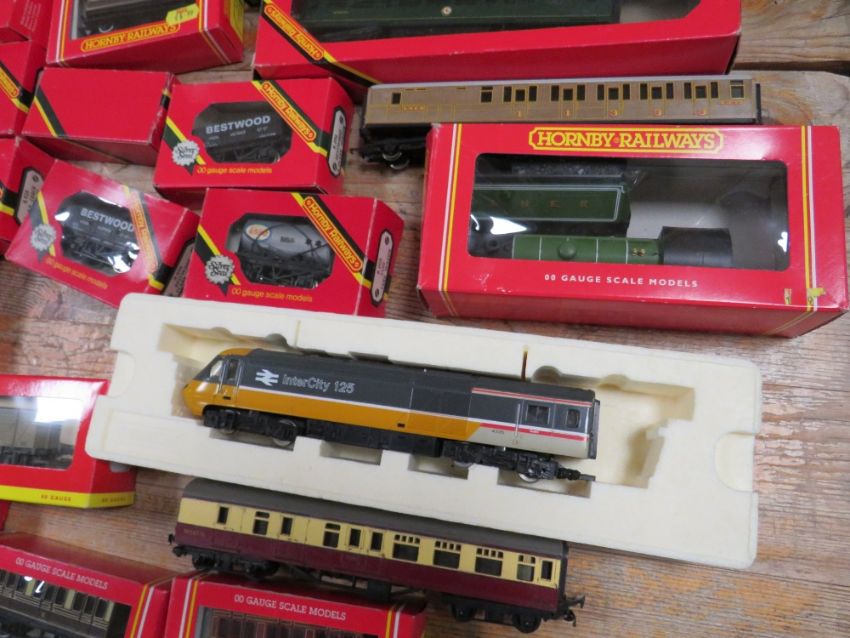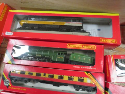 A TRAY OF MODEL TRAINS ETC TO INC HORNBY 00 GAUGE, ENGINES, CARRIAGES ETC